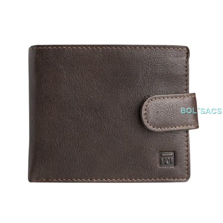 Billetero fabricado en piel natural, con varios compartimentos para tarjetas. Diseño horizontal, cerrado con clic.