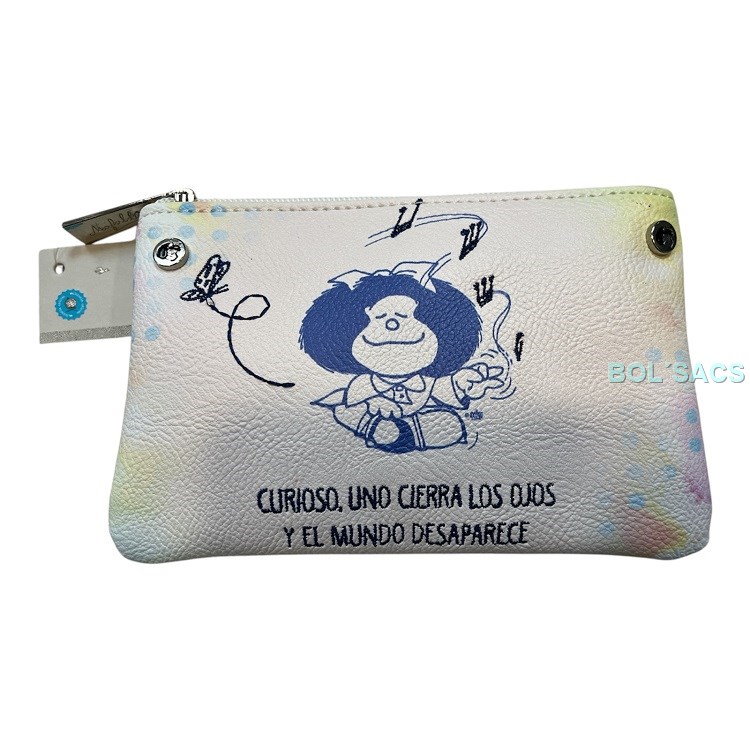 Monedero grande con frase Mafalda con cierre de cremallera.
