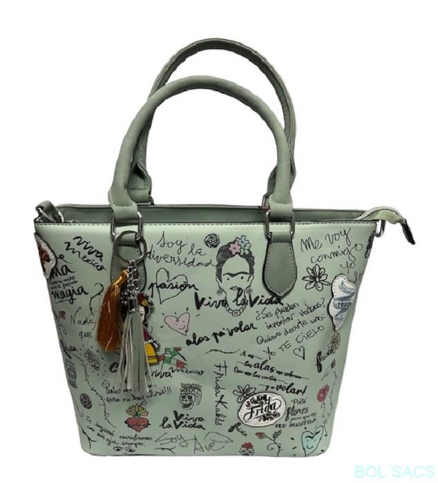 Bolso shopping Frida Kahlo.Frontal estampado tipo graffiti.