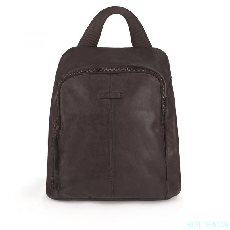 Mochila de piel lavada de la marca Gabol de la colección Delhi.Apertura trasera que la convierte en antirrobo , bolsillo delantero cierre de cremallera.